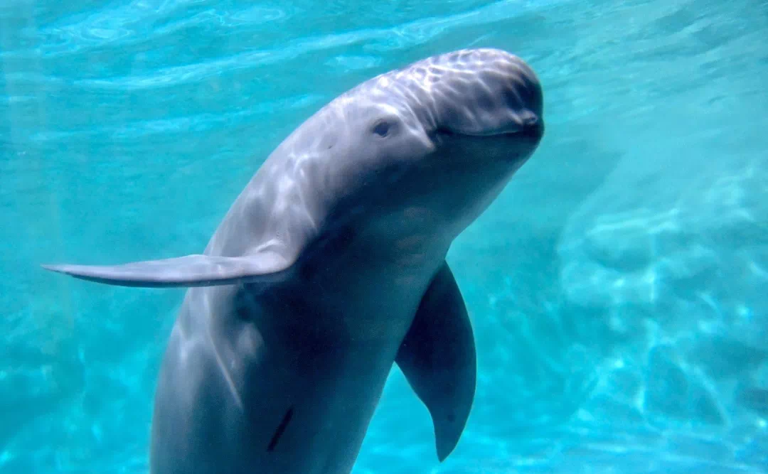 还有鲸豚类哺乳动物江豚实时跃出江面溅起一朵朵清亮的水花(江豚,图片源自@VCG;但长江流域另一种鲸豚哺乳动物白鱀豚,已经功能性灭绝)▼