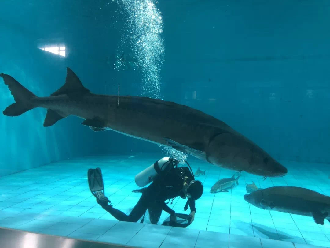 丰富的生态数十种鱼类在此生息包括中华鲟、胭脂鱼以及全国闻名的长江肥鱼(中华鲟,体长可达5米,体重500多千克,世界较大的淡水鱼之一,图片源自@VCG)▼