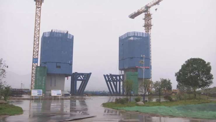 在伍家岗长江大桥的施工现场,大桥主塔蓝色区域就是历时50天建设的智能顶升系统,今后大桥的主塔部分就将节节攀升,这也是国内首次将智能顶升系统运用于大型桥梁建设的领域。