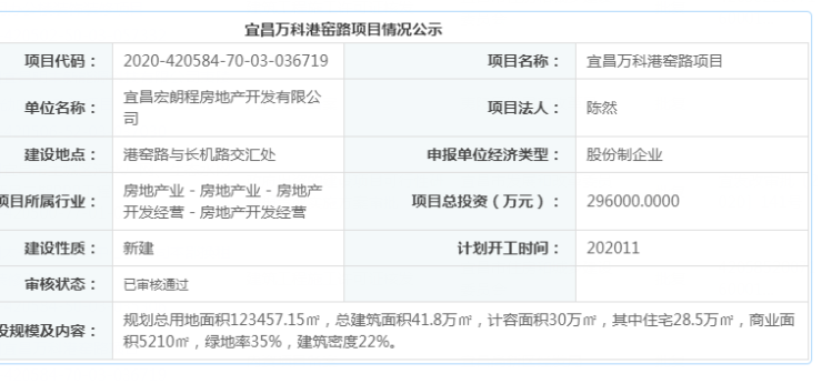 宜昌万科港窑路项目规划41.8万方 计划今年11月开工