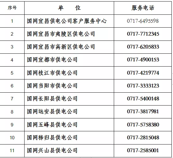 国网宜昌供电公司业务办理服务电话