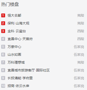 上周宜昌热门楼盘点击排行前10出炉 伍家岗区域内新盘受热捧